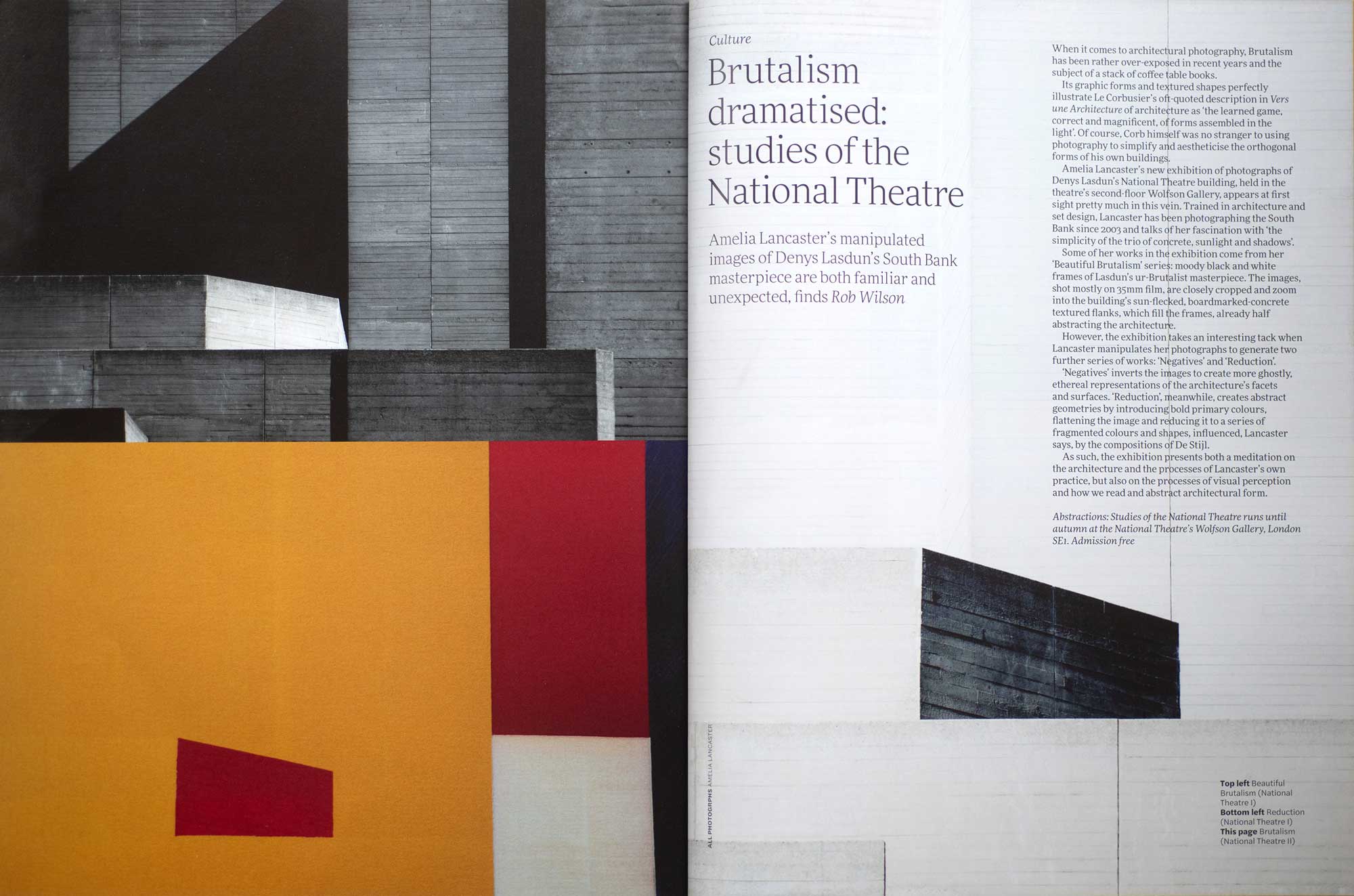 As such, the exhibition presents both a meditation on the architecture and the processes of Lancaster’s own practice, but also on the processes of visual perception and how we read and abstract architectural form. Abstractions: Studies of the National Theatre funs until autumn at the National Theatre’s Wolfson Gallery, London SE1. Admission free.